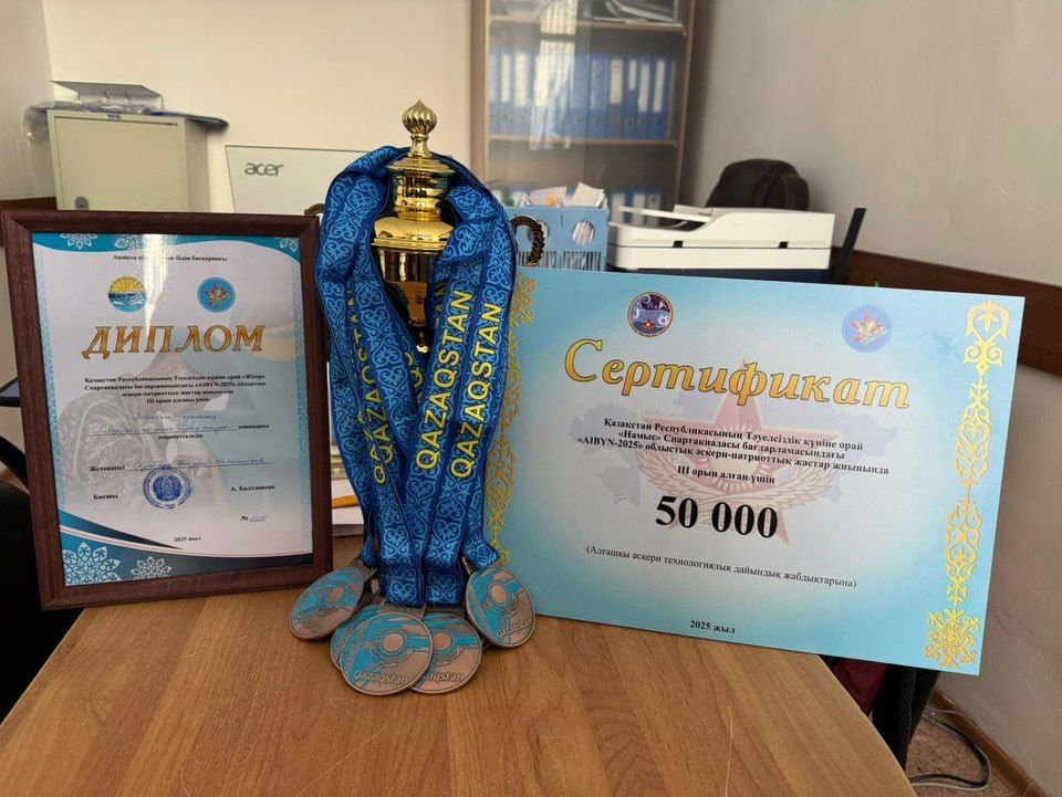 Ақмола облысы білім басқармасының “Туризм, дене шынықтыру, алғашқы әскери және технологиялық дайындық орталығы” КММ - нің ұйымдастыруымен, Қазақстан Республикасының Тәуелсіздік күніне орай, ағымдағы айдың 9-12 күндері арасында, Қазақстан Республикасы Қорғаныс министрлігі Шоқан Уалиханов атындағы әскери колледжі базасында “Жігер”, “Намыс” Спартакиадасы аясында өткен “АЙБЫН - 2025” облыстық әскери - патриоттық жастар жиынында колледжіміздің “ОТАН” әскери - патриоттық клубының тәрбиеленушілері жүлделі үшінші орынға ие болып Кубок, медаль, мадақтамалармен қоса 50000 теңге сертификатымен марапатталды!